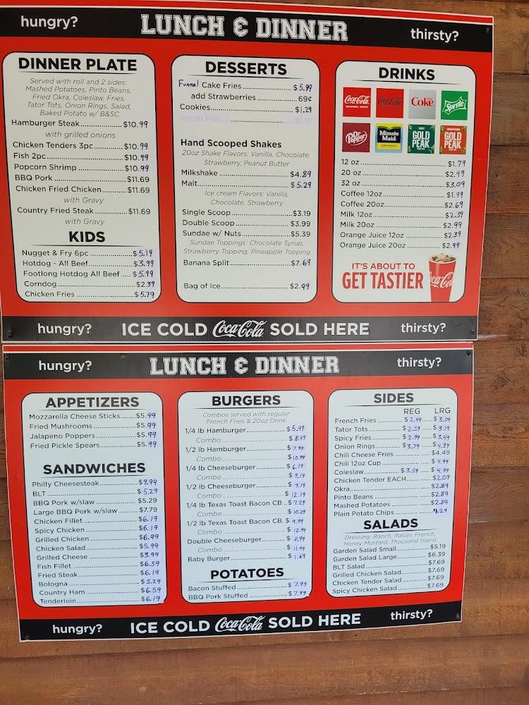 Popular items include chicken nuggets, hot dogs, and classic chili. Prices are affordable, ensuring a satisfying meal without overspending. Desserts like shakes and sweet tea make great complements to any meal.
